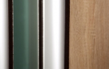 Раздвижные механизмы дверок позволяют создавать шкафы-купе с самыми разнообразными конструкциями: с двумя, тремя и более подвижными плоскостями, а так же иметь радиусные боковые элементы. Для оформления фасадов применяют как стандартные шпонированные материалы, так и дерево с резьбой, стекло, пластик, зеркала, комбинированные элементы.