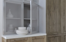 Одним из материалов, который широко применяется в изготовлении кухонь является МДФ рамочного типа. Исходя из названия, его производство основано на рамках из МДФ. Их подвергают необходимой термо - химической обработке, после чего обтягивают пленкой ПВХ со всех сторон. Данный способ придаёт материалу наибольшую прочность.