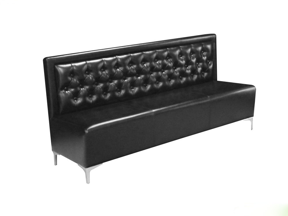 Стильный, небычный и компактный диван АльКапоне экономит свободное пространство и будет прекрасно дополнять интерьер вашего офиса, кафе, ресторана, бара, кухни, прихожей или кабинета. Эффектная пиковка спинки декоративными пуговицами создает особый стиль и уют. Может быть выполнен в различных вариантах искусственной и натуральной кожи, мебельной ткани. Без механизма трансформации. Версия дивана АльКапоне Лайт - это облегченный вариант стандартного дивана, его установили на высокие металлические опоры и уменьшили высоту спинки. Заказать можно любой вариант комплектации любой длины: отдельно трехместный, с креслом, или составить два двухместных в один диван.