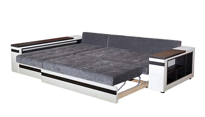 Практичный диван в строгих формах и полноценным двухспальным местом для каждодневного использования с механизмом дельфин.