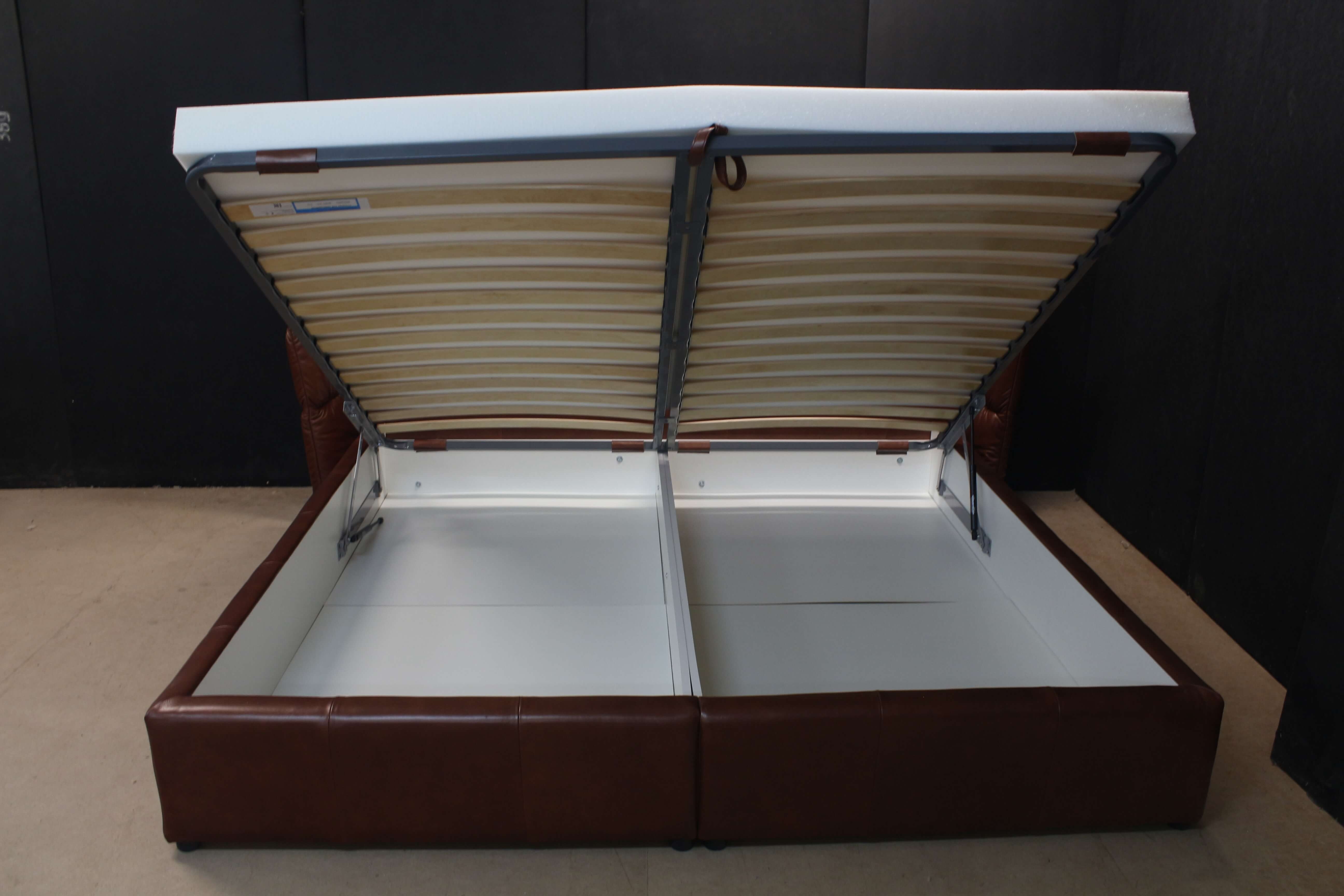 Модель оснащена подъемным механизмом газлифт. В основании вместительные ящики для белья.