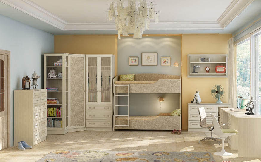 - 3 вида кроватей: односпальная, двухъярусная и кровать-чердак, позволяющая создавать полнофункциональные решения в небольших комнатах;