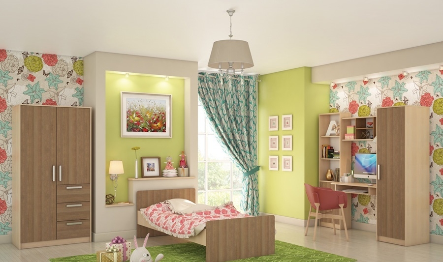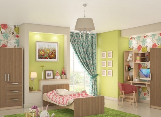 Прекрасный недорогой вариант для дошкольников и учеников младших классов.  В ней есть все, что необходимо ребенку по минимуму.  Мебель выполнена в цвете натурального дерева, что создаст в комнате уют, тепло и комфорт.