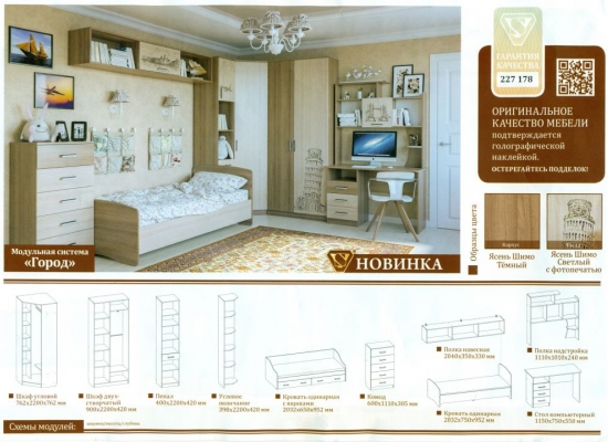 Детская серия "Город" - идеальное решение для детской комнаты, созданная больше для подростков. Выполнена в приятных спокойных тонах. Изюминкой этой серии являются интересные элементы с фотопечатью.  Данная модель выделяется огромным функционалом - множество выдвижных ящиков, пенал, комод, угловой шкаф, компьютерный стол. Это очень стильная и современная модель. И самое главное - Вы сможете самостоятельно подобрать варианты модулей, которые идеально впишутся в интерьер детской комнаты!