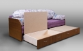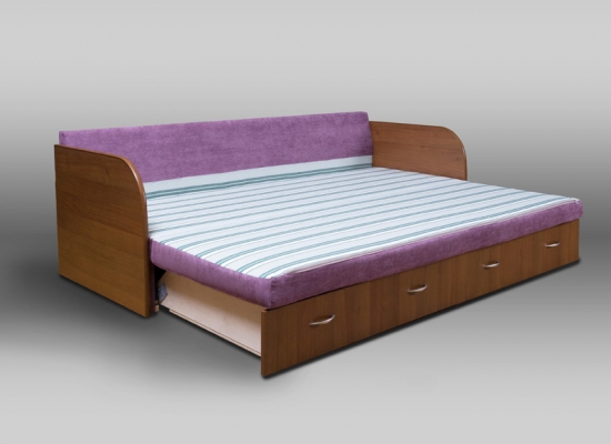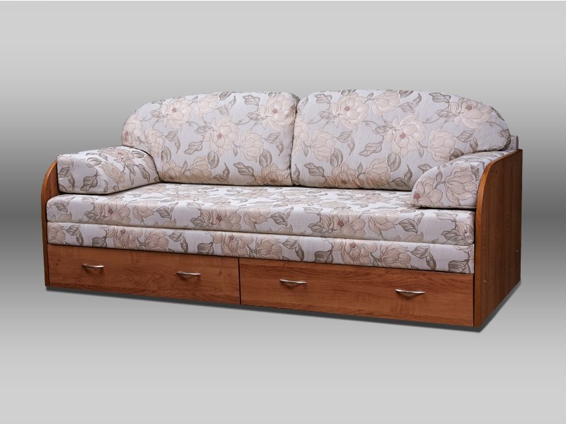 Данная модель гармонично сочетает в себе дизайн и прочность конструкции, оригинальность форм соседствует с простотой в использовании. Ламинированные подлокотники позволяют сэкономить место в комнате и визуально облегчают конструкцию, спинка защищает во время сна от соприкосновения со стеной. Подушки делают диван комфортабельным и стильным, а механизм трансформации позволяет превратить внешне небольшой и аккуратный диван в полноценную кровать. «Кроха 200» - удачное решение для детской комнаты. В нишах, расположенных под сидением, ребёнок сможет хранить не только бельё, но ещё и игрушки. Производитель фабрика Треви