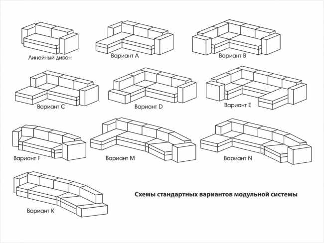 За счет модулей возможны любая комплектация и размер (шаг ‒ 5 см).