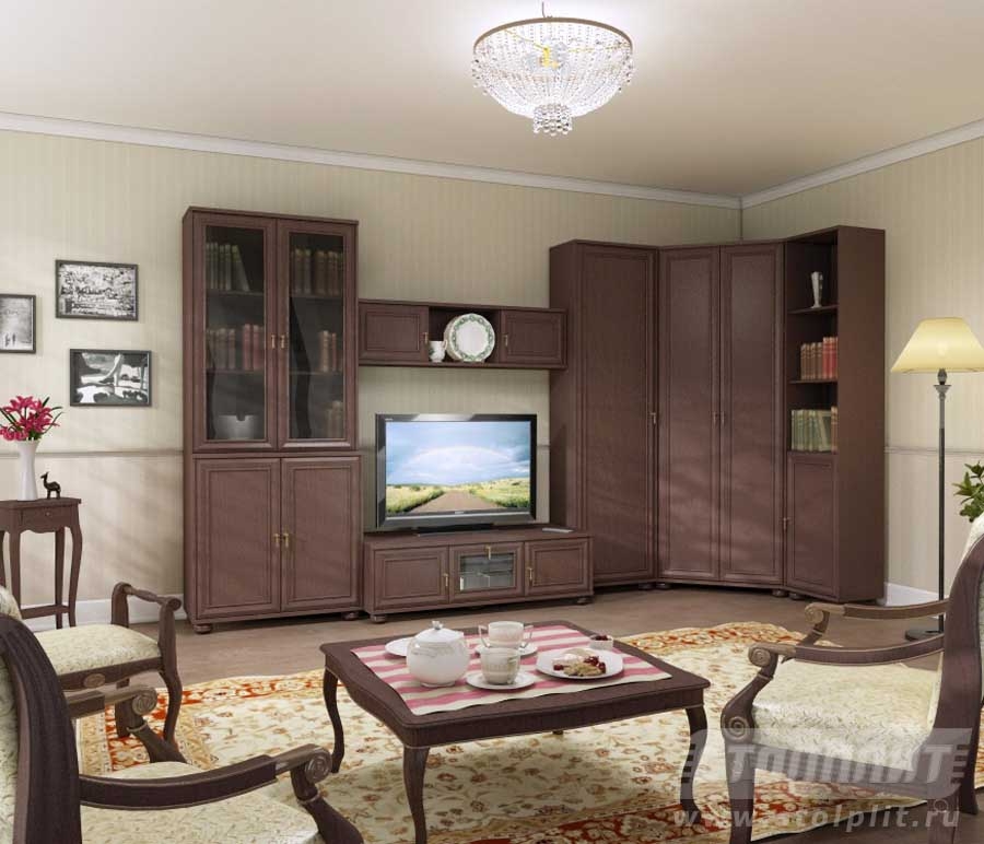 Стильная гостинная "Верди". Выдержанный стиль, оригинальная фурнитура, подобранная в одном стиле и цвете с мебелью. Благодаря большому количеству модулей можно создать свою собственную композицию котора будет отвечать всем вашим требованиям по стилю, дизайну, размерам и функциональности.И 5 тысяч моделей мебели на сайтеwww.mebelmax.by