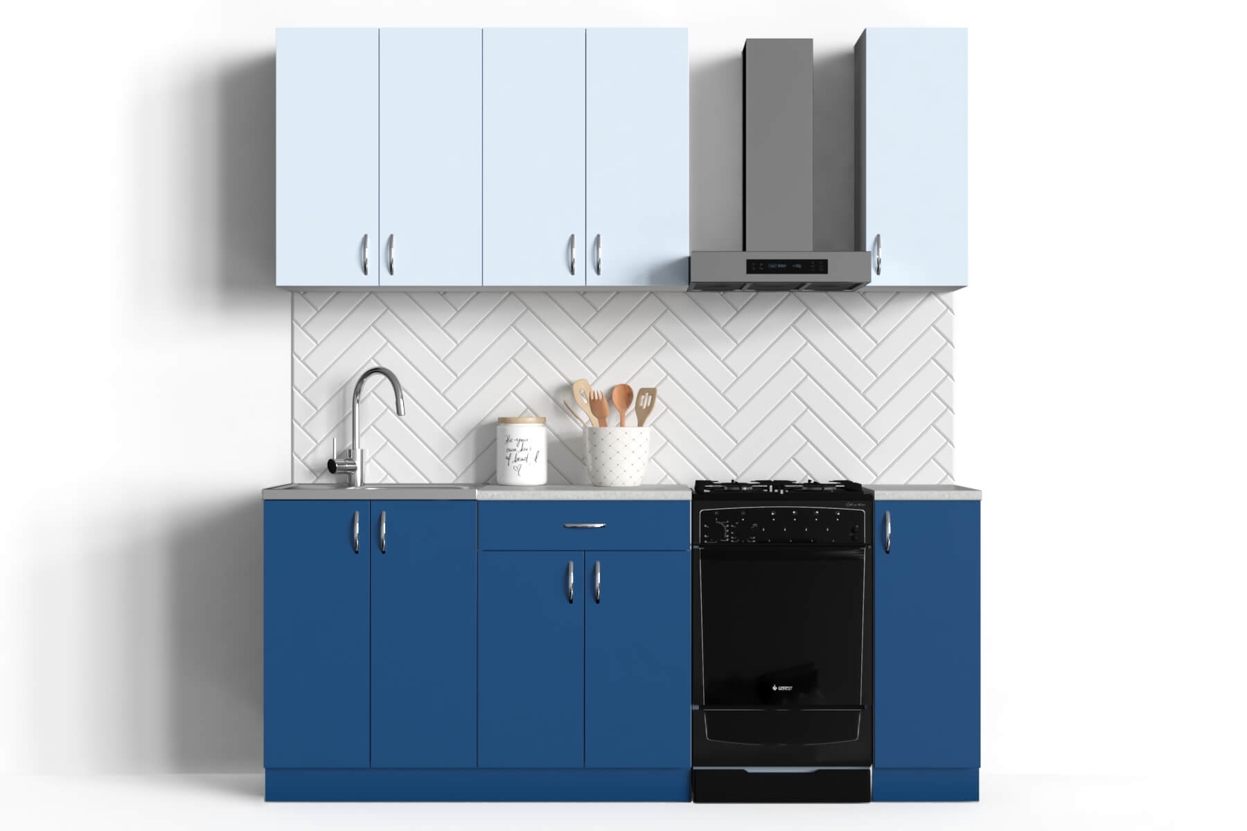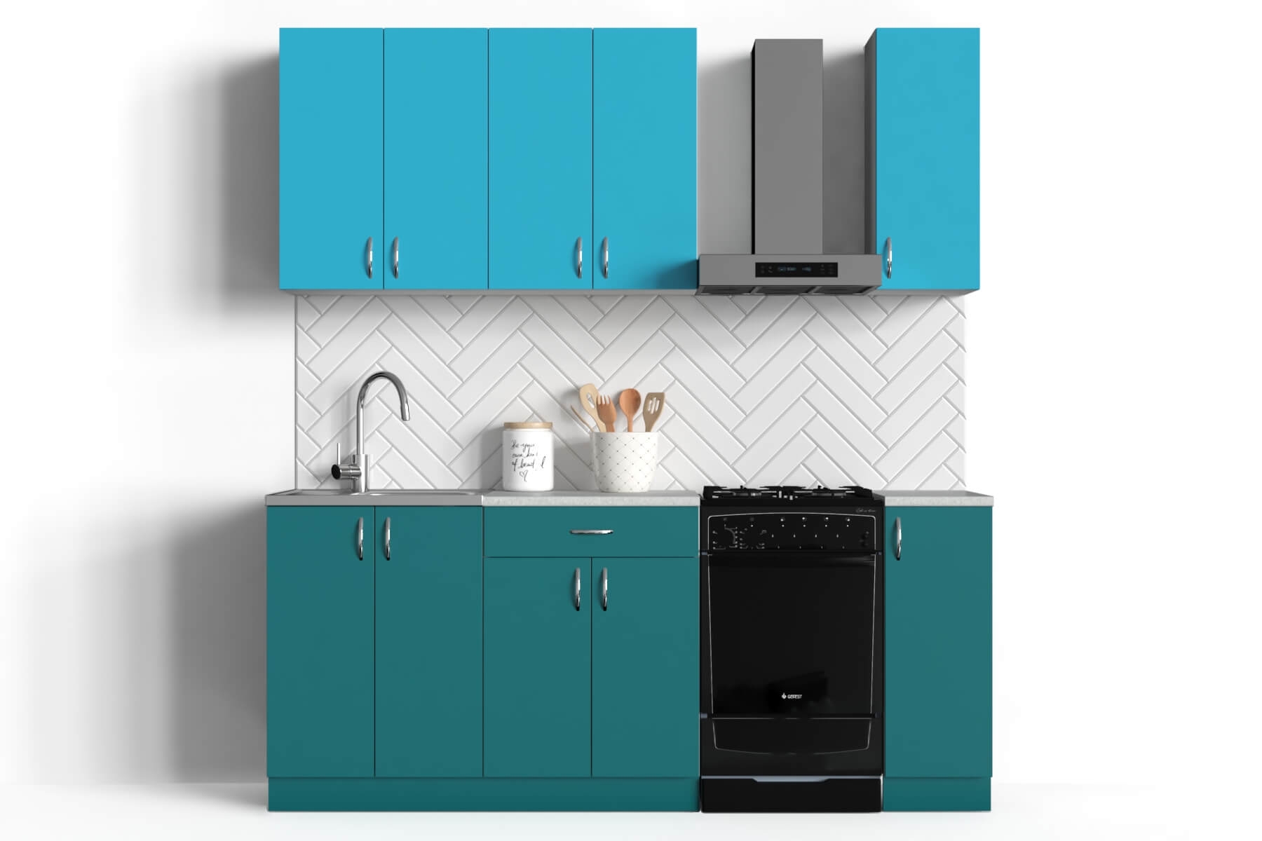 Столешница: «Скиф» толщиной 26 мм, цвет Семолина серая, на каждый шкаф отдельная за исключением шкафа под мойку т.к. мойка накладная.