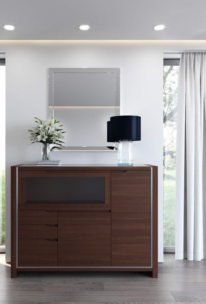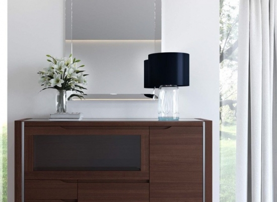 | Дополнительная информация | витрина (стекло с фацетом, внутри зеркальное полотно с гравировкой); 2 ящика с направляющими QUADRO глубиной 350мм; отделения с полками ЛДСП; ручка фрезерованная |