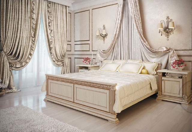 Кровать «Виола», без сомнения, станет украшением для любой спальни. Выполненная в трех размерах, она рассчитана на стандартные матрасы. По желанию, может быть как со спинкой изножья, так и без нее. Отделанная декоративными накладками и узорным плинтусом в общем стиле коллекции, такая кровать будет долгое время радовать Вас своей красотой и изящностью.