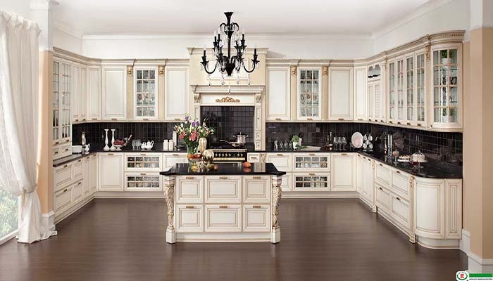 Классический стиль и светлые тона кухни ЗОВ станут отличным выбором для Вас и Вашего кухонного пространства. Контрастная черная столешница и стеновая панель подчеркнет вашу индивидуальность и прекрасно оформит пространство кухни.
