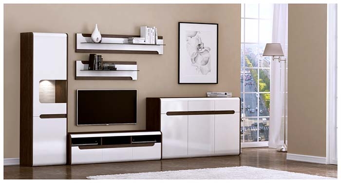 Гостиная «Плаза» — это фасады, покрытые 4-мя слоями итальянского лака. В отличие от аналогичных коллекций, данная гостиная укомплектована только качественной немецкой фурнитурой «Hettich».