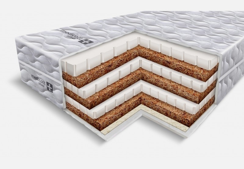Жесткий долговечный беспружинный матрас из чередующихся натуральных компонентов – латекса и кокосовой койры. Стороны матраса отличаются по уровню жесткости. Идеально подходит для людей с весом 90-150 кг. Матрас подойдет также и для любителей жестких пружинистых оснований. Чехол матраса (съемный, разделяющийся, с молнией на 4 стороны): стеганая антиаллергенная трикотажная ткань Jersey с содержанием хлопка.