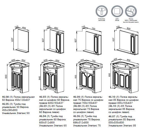 46.07 (1) Тумба под умывальник 85 Верона 835х335х800