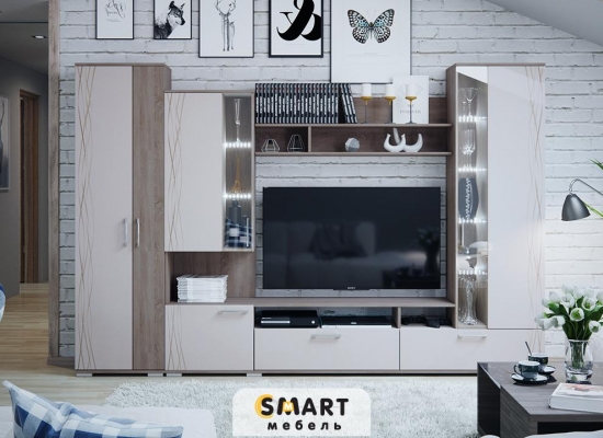 Модульная гостиная Флай (Фон Бежевый, Дуб Сонома трюфель)