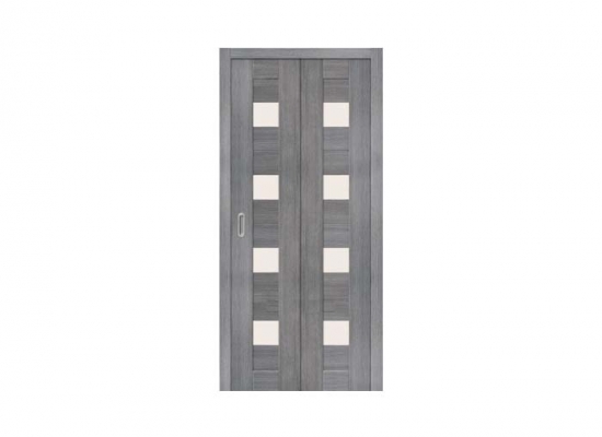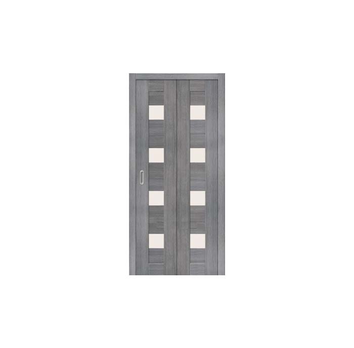 Двери складные (дверь-книжка) - идеальное решение в тех случаях, когда требуется меньше пространства для открывания. Отделка полотна: антивандальный эко шпон с защитным лаком (Германия). Стекло: Сатинато белое "Magic Fog". Материал: композитный мебельный щит с использованием LVL-бруса. "Бескромочная" технология производства. Для монтажа данного типа дверей необходимо приобрести: 2 равных по ширине полотна (35 или 40 см); перекладину в комплекте с верхней направляющей П-2 (1000 или 2000 мм); 2 стойки; 1 ролик B-100; 2 универсальных петли; при необходимости: наличники, доборы. Укомплектовать фурнитурой на выбор: ручка-купе или замок-купе.