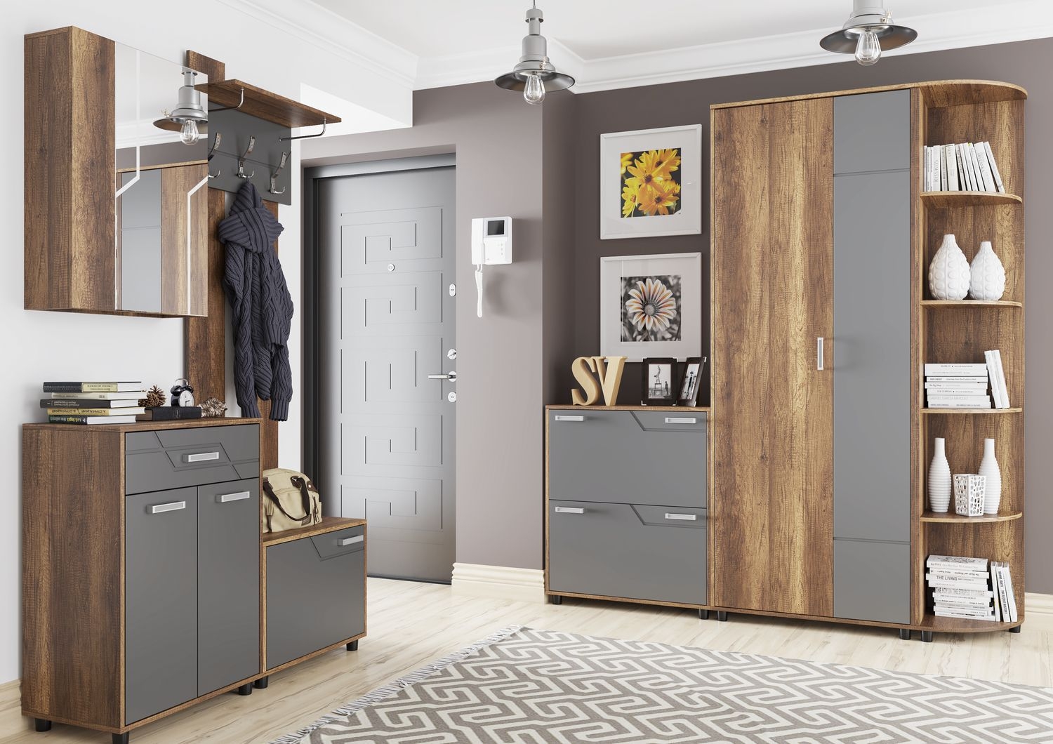 Вешалка с обувницей SV-МЕБЕЛЬ дуб каньон/серый
