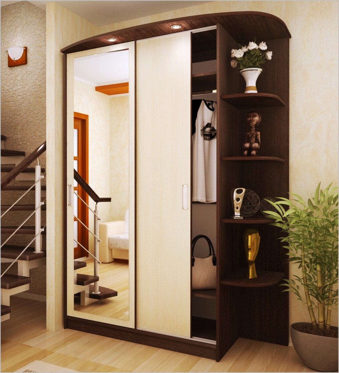 2-х дверный шкаф-купе с двумя отделениями и угловой консолью, оборудован встроенной подсветкой на 2 светильника. Исполняется с левой и правой консолью.