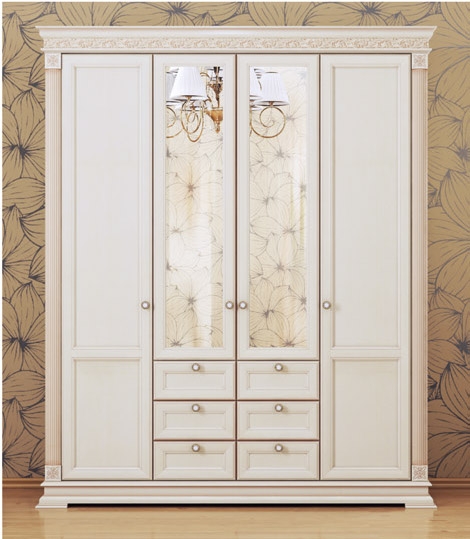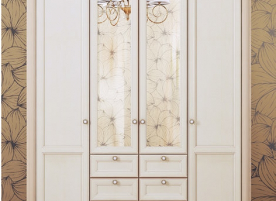 Полноценный гардеробный шкаф. Зеркала на центральных фасадах удобно дополняют его функциональность.