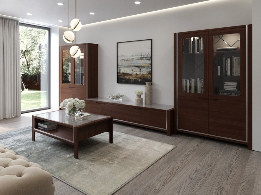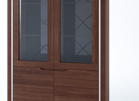 | Дополнительная информация | фасады с витринами (внутри зеркальные полотна с гравировкой, полки из стекла); фасады из массива (внутри полки ЛДСП); ручка фрезерованная |