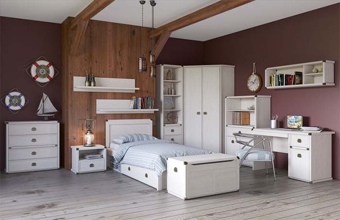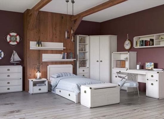 Набор для детской комноты "Magellan".Это вдохновленная морскими мативами мебель.Декоротивные элементы и оригинальные ручки, идеально смотрятся в любом интерьере комнаты ребенка.