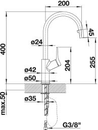 - Высокий изогнутый излив облегчает наполнение высоких кастрюль и ваз