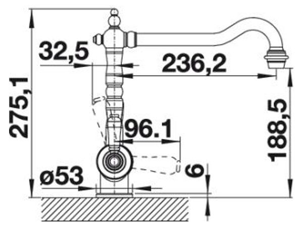 Один совмещенный излив для питьевой и обычной воды с разделением рассекателя