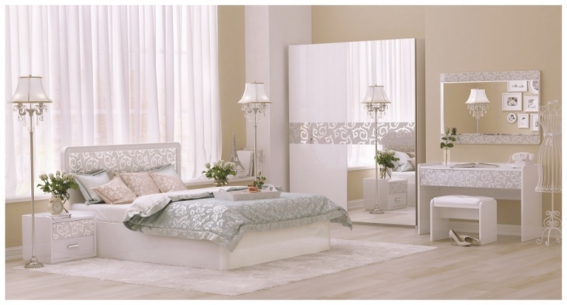 Легкие и воздушные интерьеры сейчас актуальны, как никогда. Одно из самых эффективных решений для создания такого стиля - купить белую спальню. Комната, заставленная белой мебелью, никогда не будет смотреться перегруженной, пространство всегда будет залито светом, и станет визуально шире. Еще одно преимущество белого цвета – универсальность, он великолепно вписывается в любые интерьерные решения, совершенствуя и дополняя их. Коллекция белой мебели для спальни «Белла» разработана итальянскими дизайнерами. Современная и модная тенденция белого цвета в глянце дополняется легким декором светло- серебряной шелкографии стилизованного русского орнамента. Возможны модификации в других цветах – см. каталог.8 (017) 398-93-33