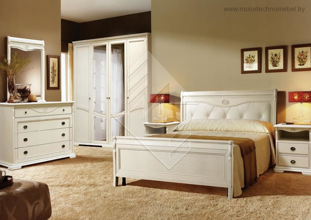 Благородная древесина дуба, резной орнамент, плавные линии брусков, фурнитура с оттенком старины, мягкая спинка кровати создают атмосферу покоя и защищённости. Стол туалетный в виде трельяжа будет находкой для тех, кто любит следить за своей внешностью, так как он позволяет оценить ее не только спереди, но и со всех сторон.