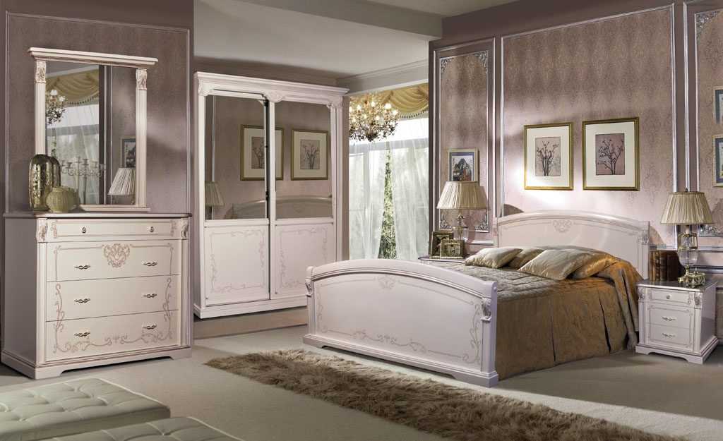 Набор выполнен с использованием массива ольхи и шпона бука на лицевых поверхностях. Украшает набор витиеватый рисунок, выполненный на принтере. Классический стиль мебели дополнен привлекательными деталями: изящный декор в виде резных элементов, наличие профильных карнизов, цоколя, отделка белой эмалью с золотой патиной.