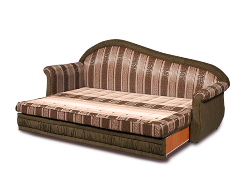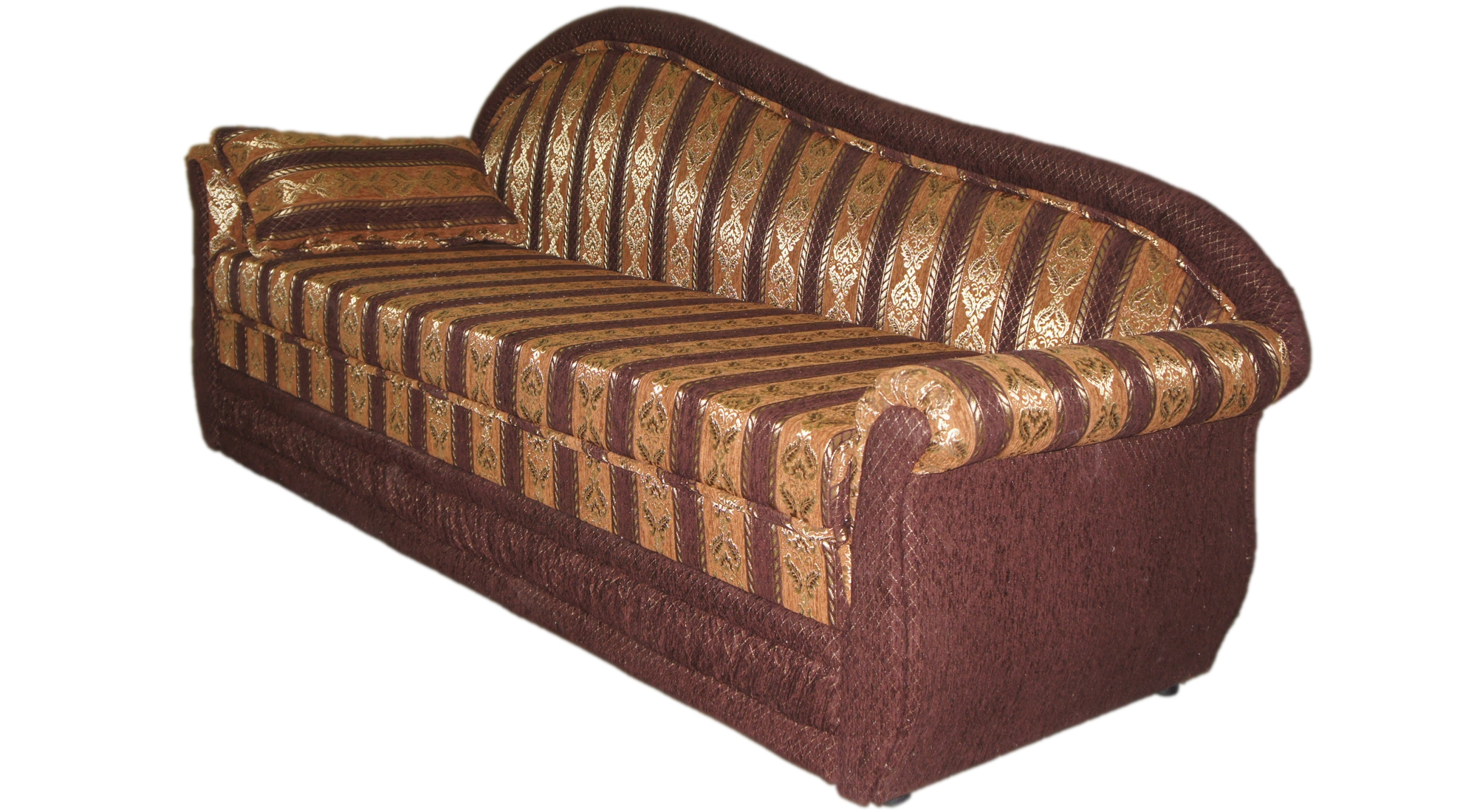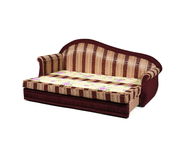 Изделие выполнено в восточном стиле, характеризуется криволинейной формой спинки, по форме напоминающей зубра, откуда и появилось название изделия "Зубр". Мягкие боковины разновысокие. По верхнему контуру спинка декорируется однотонной тканью с мягкой оборкой и руликами, которая в сочетании с основной тканью тахты подчеркивает ее стилевой образ и придает определенную степень узнаваемости изделия. Декоративная драпировка на передней стенке выдвижного короба так же украшает изделие и дополняет восприятие образа изделия. Комплектуется тахта подушкой. Под сиденьем устанавливается выдвижной короб с откидной крышкой, который может служить емкостью для постельных принадлежностей. Сиденье имеет жесткое основание рамочной конструкции, на которое крепится мягкий элемент, состоящий из двух частей. Верхняя часть может откидываться на выдвижной короб и таким образом организуется более комфортное спальное место.
