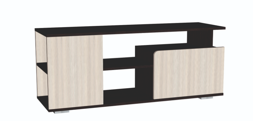 Тумба оборудована ящиком за фасадом без ручки и вместительными нишами. Тумба может служить идеальной подставкой под аппаратуру - на широком. глубоком верхнем горизонте тумбы достаточно места для размещения телевизора любой диагонали и медиацентра