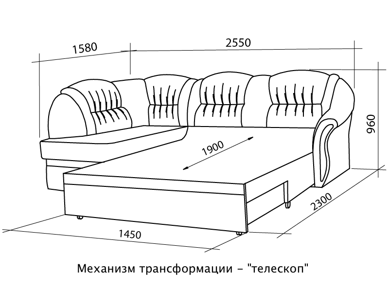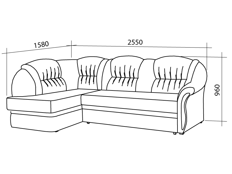 Модель выполняется как с правосторонним, так и с левосторонним расположением углового сегмента. Для удобства транспортировки и установки диван изготовлен из двух частей, которые соединяются между собой с помощью замков – зацепов.