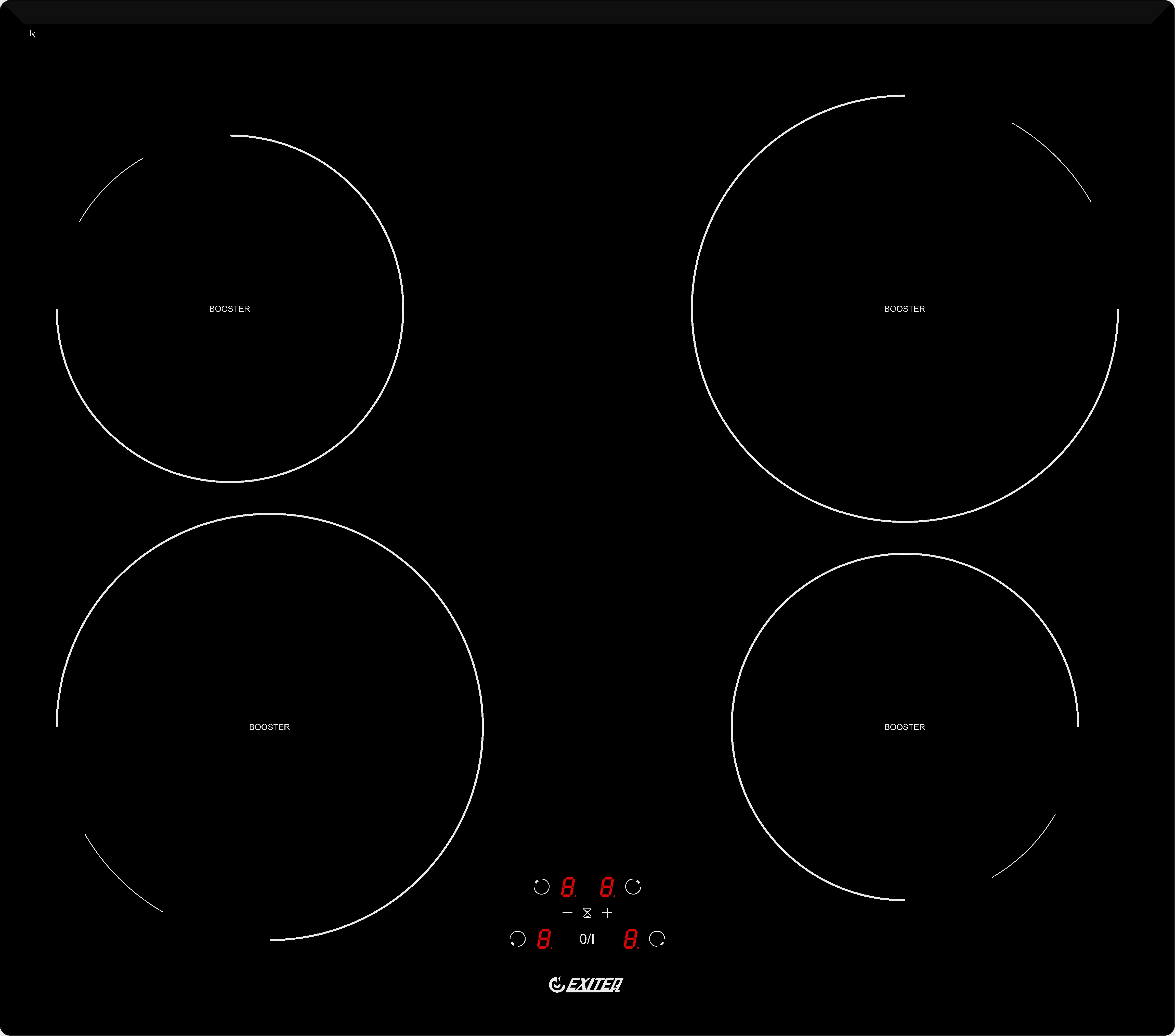 | Конфорки мощностью | Передняя левая (номинальная/усиленная) 1850 / 2100 Вт, Задняя левая (номинальная/усиленная) 1400 / 1850 Вт, Передняя правая (номинальная/усиленная) 1400 / 1850 Вт, Задняя правая (номинальная / усиленная) 1850 / 2100 Вт | |