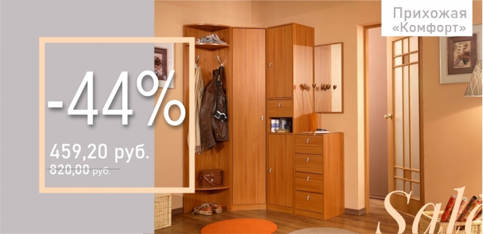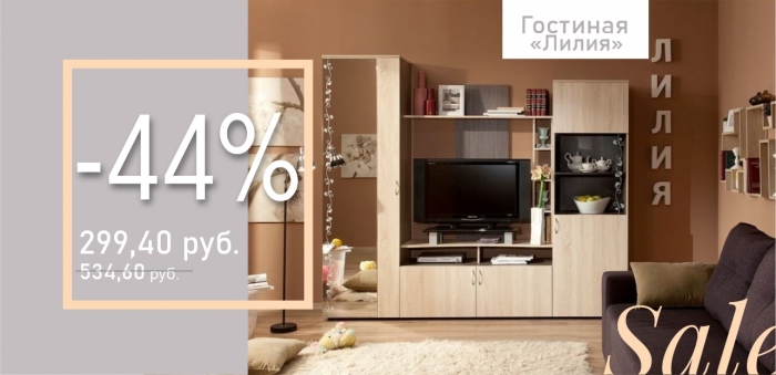 При предоставлении пенсионного удостоверения скидка 3% при заказе мебели с задатком и скидка 7% при 100% предоплаты заказной мебели. А так же при сумме от 1000 рублей и 100% предоплате заказной мебели. Доставка до подъезда бесплатно в пределах МКАД.