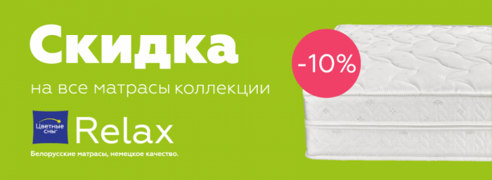 Акция на матрацы коллекции РЕЛАКС (Йорк 2, Бонни и Клайд 2, Бонни и Клайд 3, Аризон