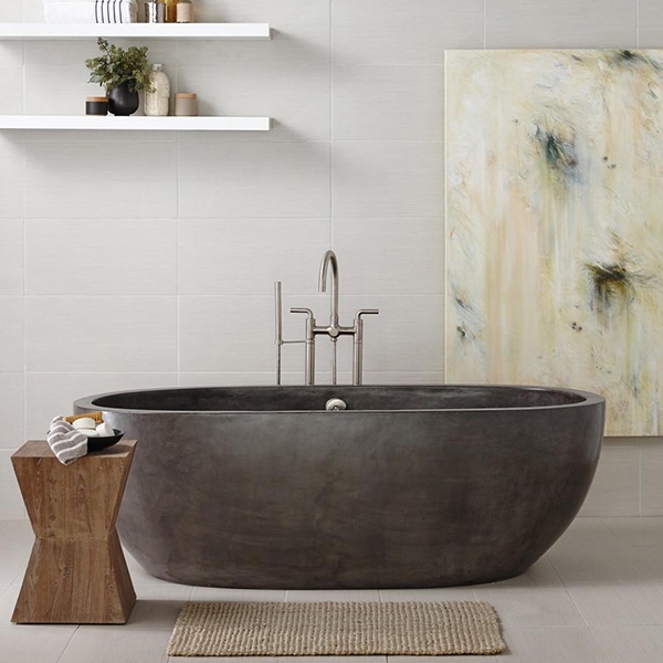 Одним из самых популярных трендов в интерьере ванной комнаты 2019 года считается бетонная отделка. Бетон смотрится деликатно и ненавязчиво, этот практичный и универсальный материал, придаст помещению индустриальный стиль. Для защиты от влаги бетонную отделку герметизируют с помощью химической обработки, а полировка обеспечивает очень гладкую поверхность. Весьма удачно бетон сочетается с белоснежной сантехникой, создавая при этом брутальную обстановку.